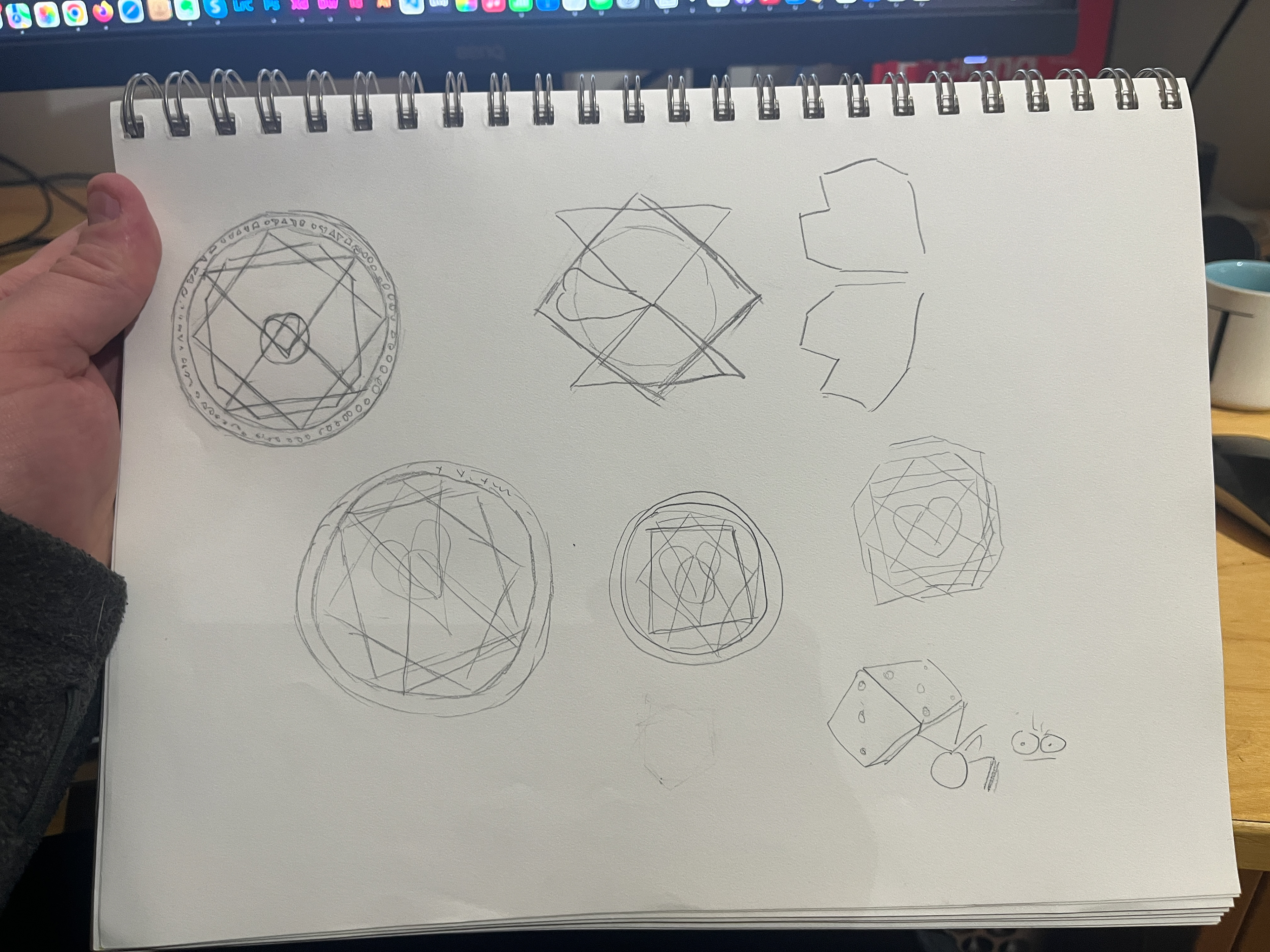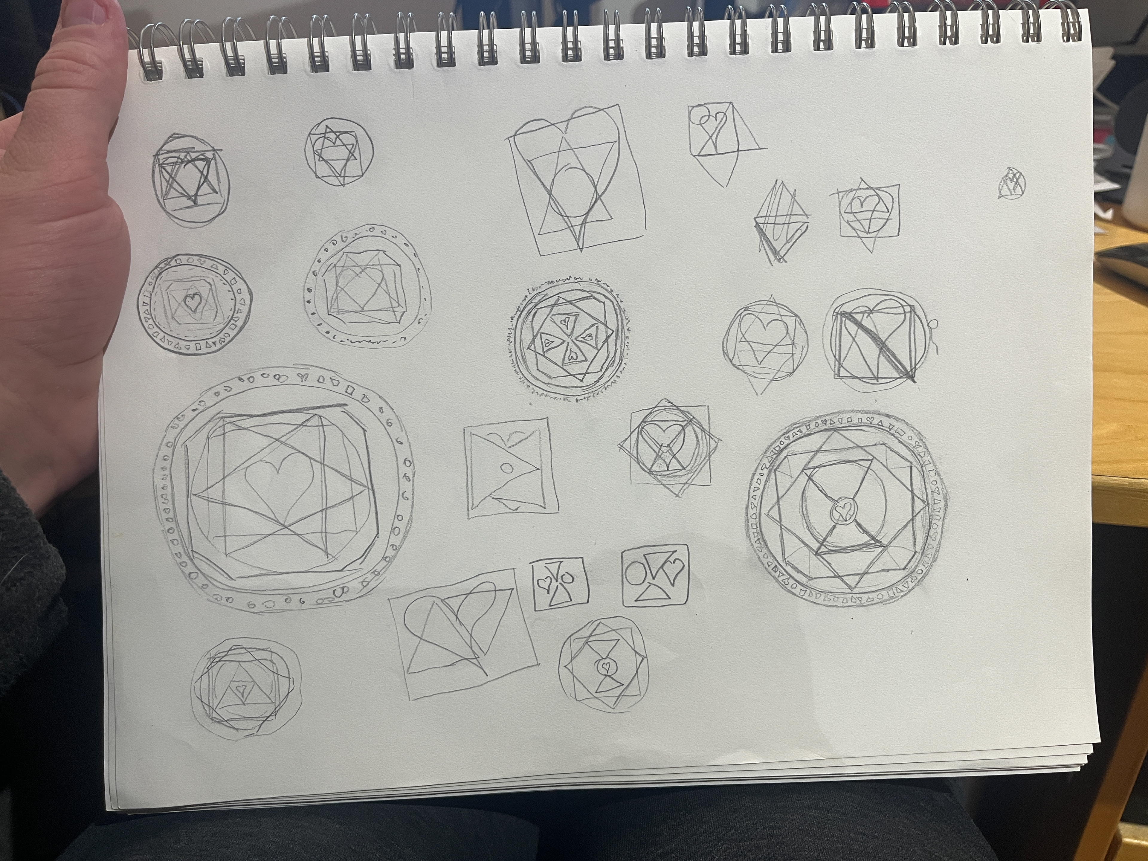 I sketched out some ideas for what it could look like, and settled on a version with the Heart in the center, the masculine / feminine triangles interlocking with each other vertically (to get both masculine/feminine and above/below or inner/outer polarities) and all of that encompassed by the circle shape.